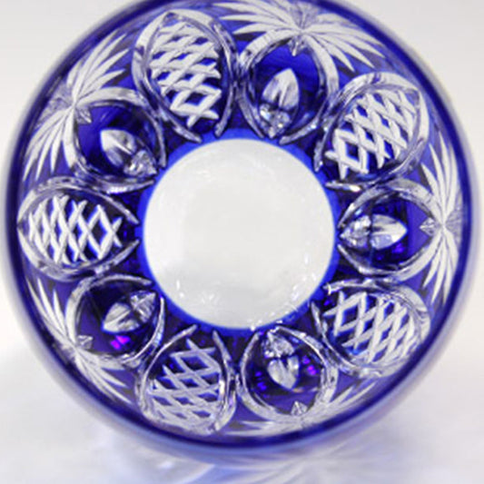 [ROCKS GLASS] WHISKEY GLASS BAMBOO FENCE & STAR (BLUE) | EDO KIRIKO | KAGAMI CRYSTAL
