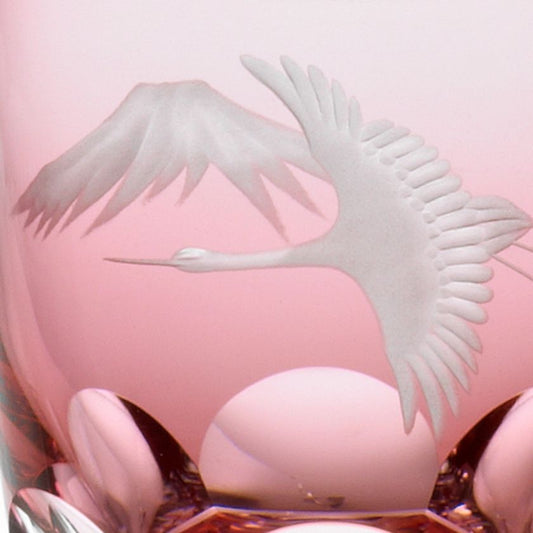 [ROCKS GLASS] WHISKEY GLASSES CRANE AND FUJI RED | GRAVURE SCULPTURE | KAGAMI CRYSTAL