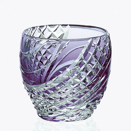 [SAKE CUP] FISH SCALES STRIP PURPLE | EDO KIRIKO | KAGAMI CRYSTAL