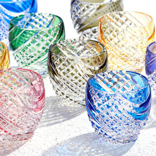 [SAKE CUP] FISH SCALES STRIP | EDO KIRIKO | KAGAMI CRYSTAL