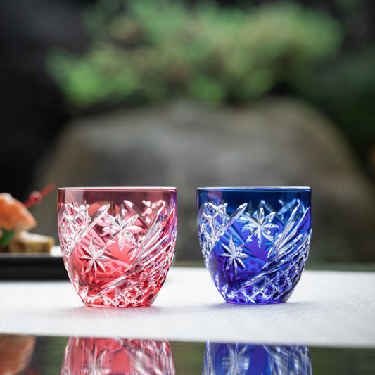 [ROCKS GLASS] WHISKEY GLASS KASANEIROME TAMAMAI (JUGGLING BALLS) | EDO KIRIKO | KAGAMI CRYSTAL