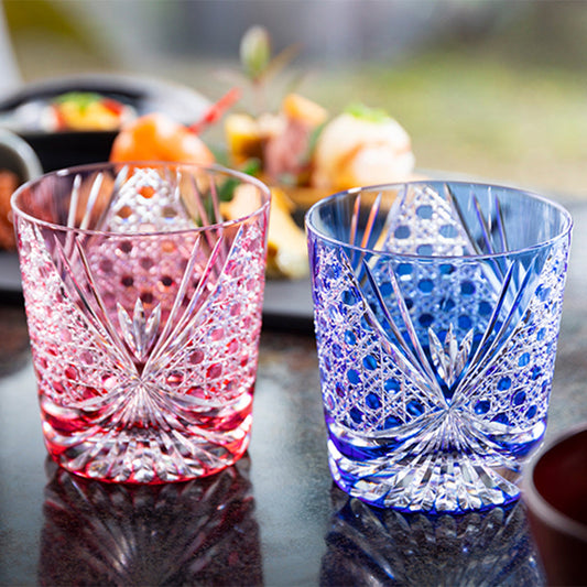 [ROCKS GLASS] WHISKEY GLASS DRAPE & TETRAGONAL BASKET WEAVE (RED) | EDO KIRIKO | KAGAMI CRYSTAL