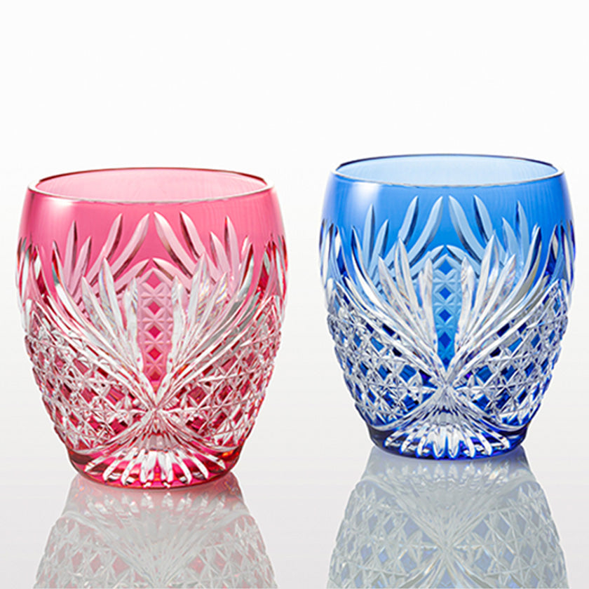 [ROCKS GLASS] PAIR OF WHISKY GLASSES ROKKAKU (DEER ANTLERS) | EDO KIRIKO | KAGAMI CRYSTAL